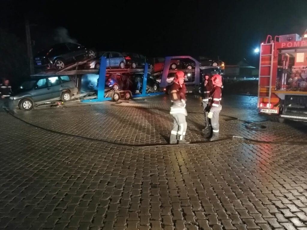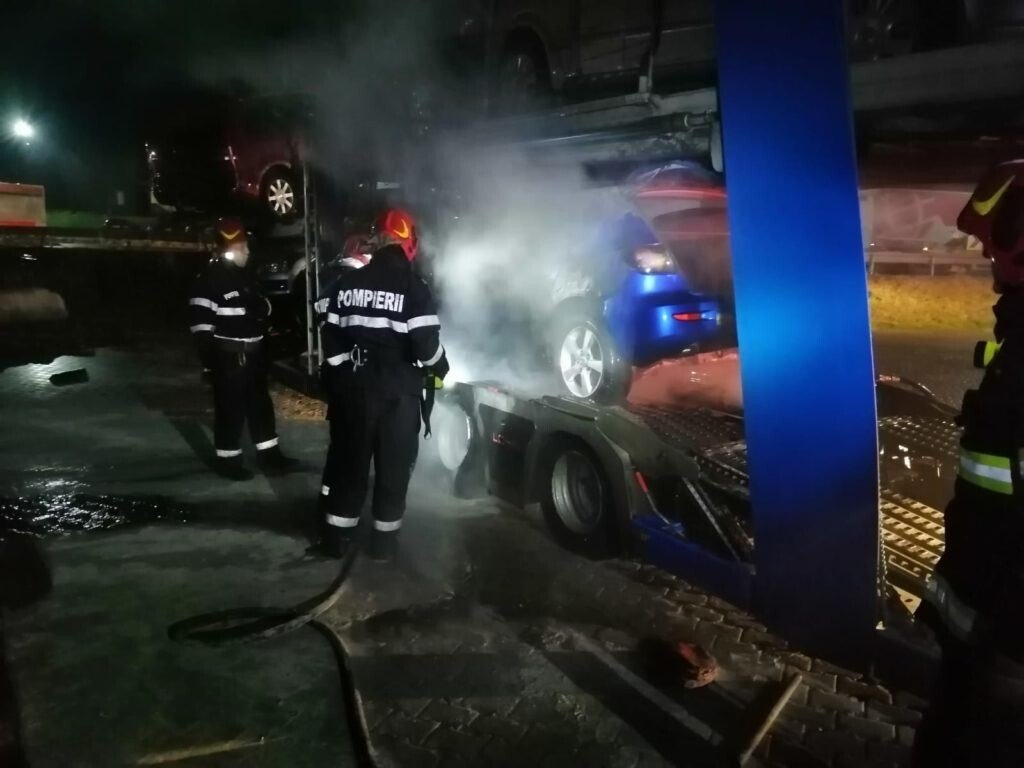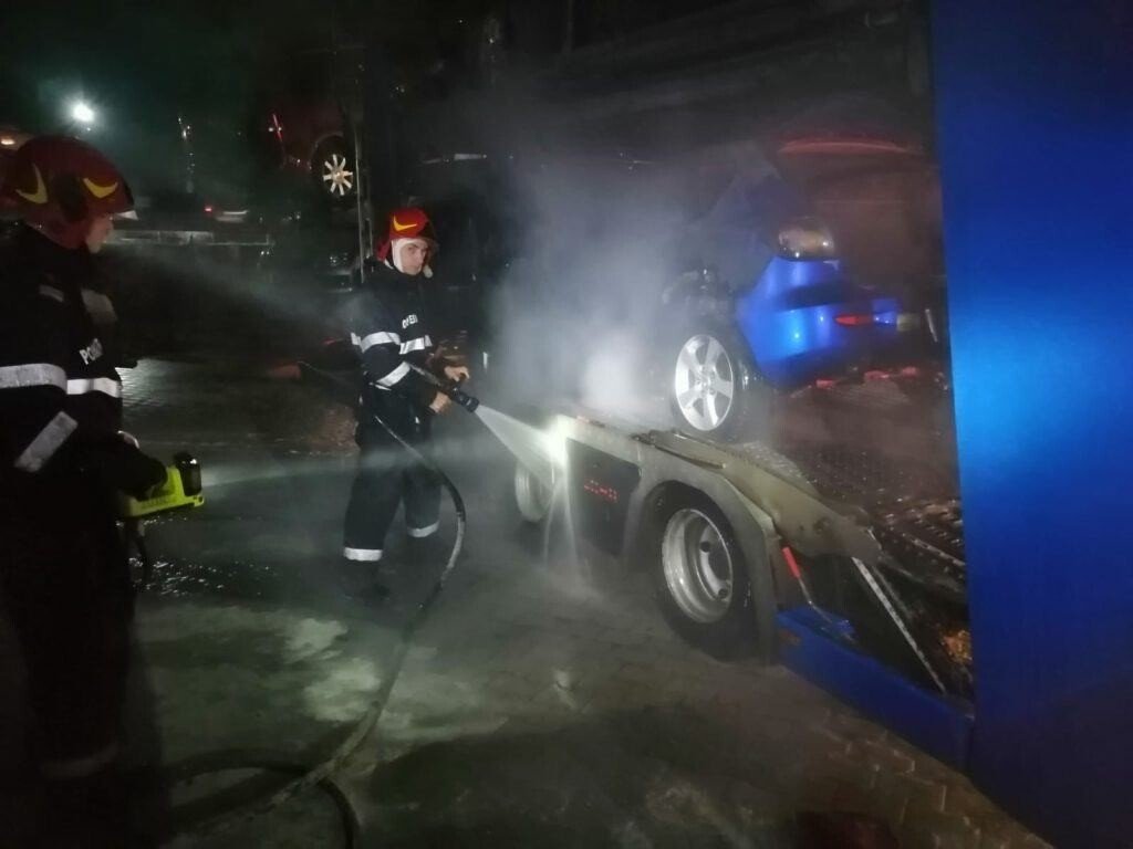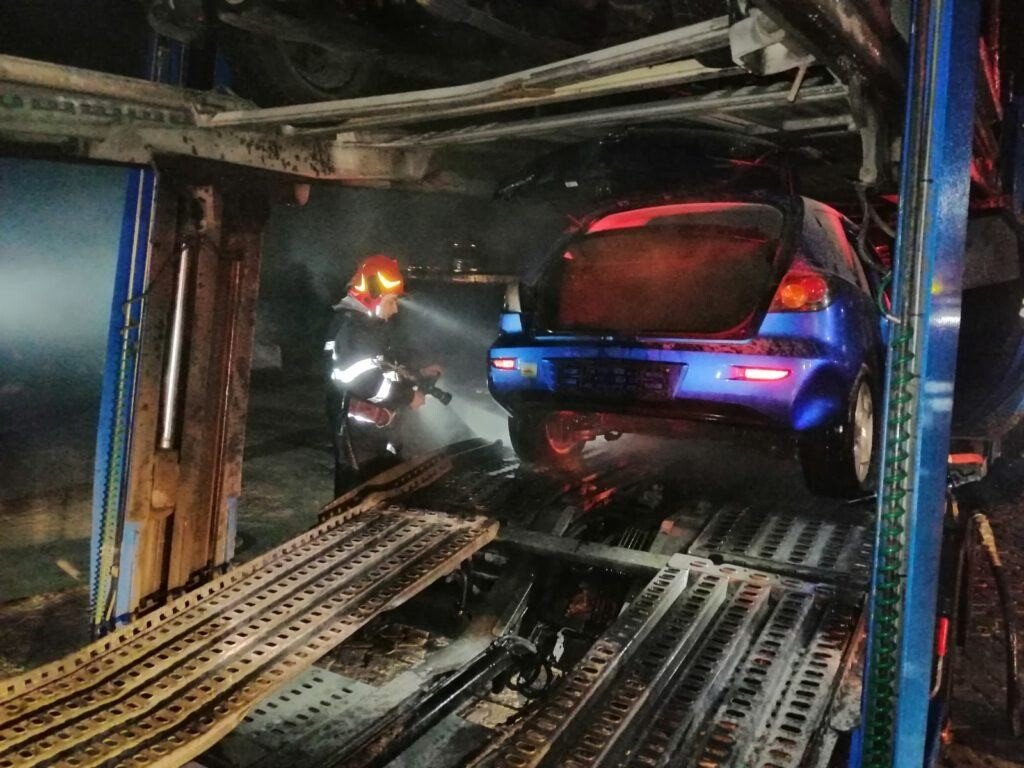 ISU Sibiu a intervenit în cursul nopții pe DN 7, pe raza localității Boița, pentru localizarea și lichidarea unui incendiu izbucnit la roata unui transportor de autoturisme și care s-a extins la șasiul unuia dintre autoturismele transportate.