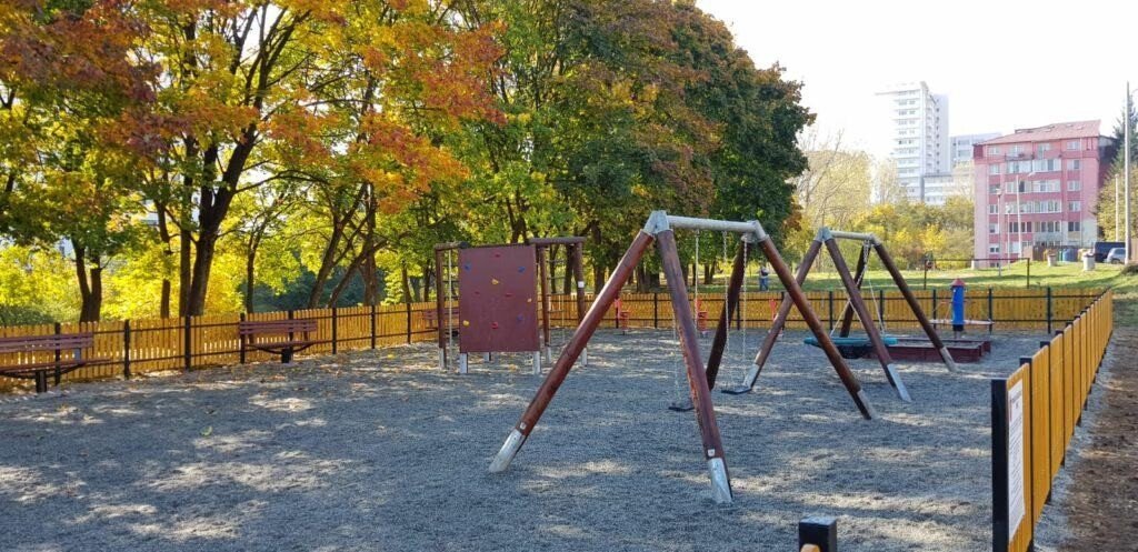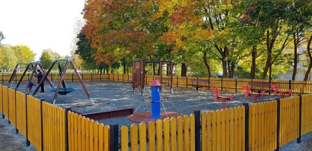 Locul de joacă a fost înconjurat de un gard de lemn pentru siguranța copiilor care se vor juca aici. De asemenea, au fost amplasate în zonă bănci și coșuri de gunoi. În următoarea săptămână se va însămânța gazon în jurul locului de joacă și se vor planta arbori pentru amenajarea zonei adiacente.