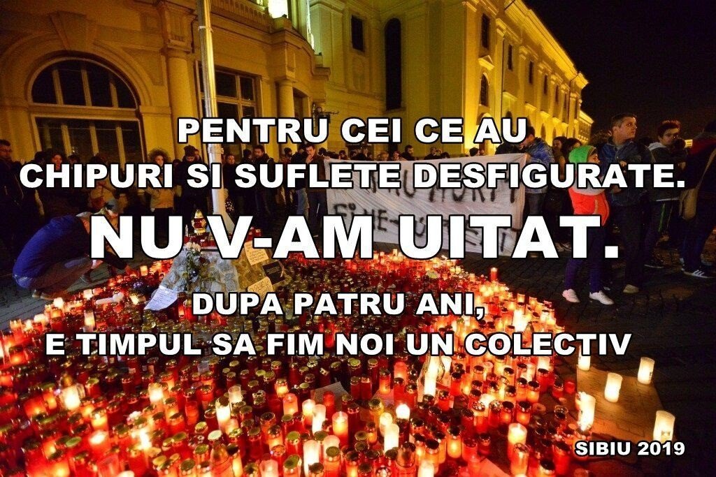 Pentru al patrulea an consecutiv, sibienii și-au exprimat regretul față de cele 65 de victime decedate în urma incendiului din Clubul Colectiv din 30 octombrie 2015. Miercuri, în jurul orei 19, o liniște apăsătoare s-a lăsat peste Piața Mare din Sibiu, unde singurul sunet era al picăturilor de ploaie căzute pe capacele candelelor, aduse de cei aproximativ 100 de oameni îndurerați.