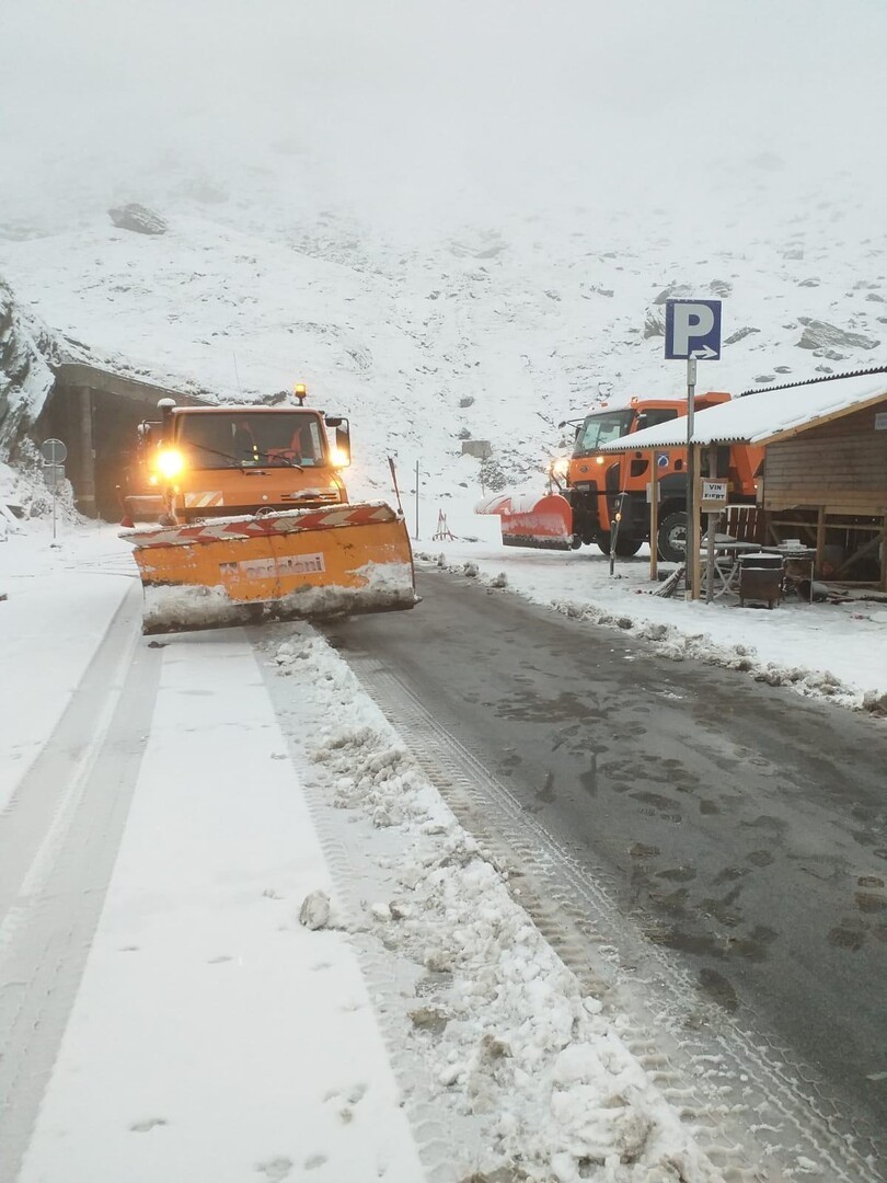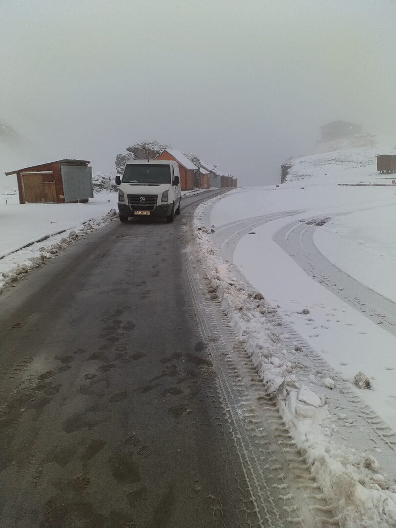 Vremea s-a schimbat radicat pe Transfăgărășan și a început să ningă puternic. Stratul de zăpadă măsoară câțiva centrimetri iar mai multe utilaje de deszăpezire patrulează pe tot traseul montan. Ca măsură de siguranță drumarii au împrăștiat material antiderapant.