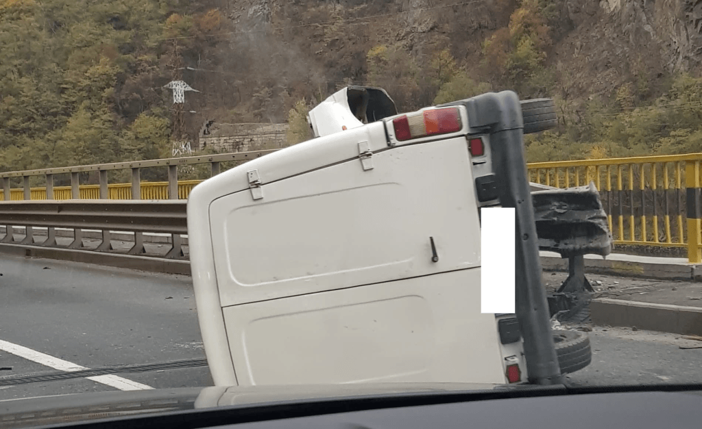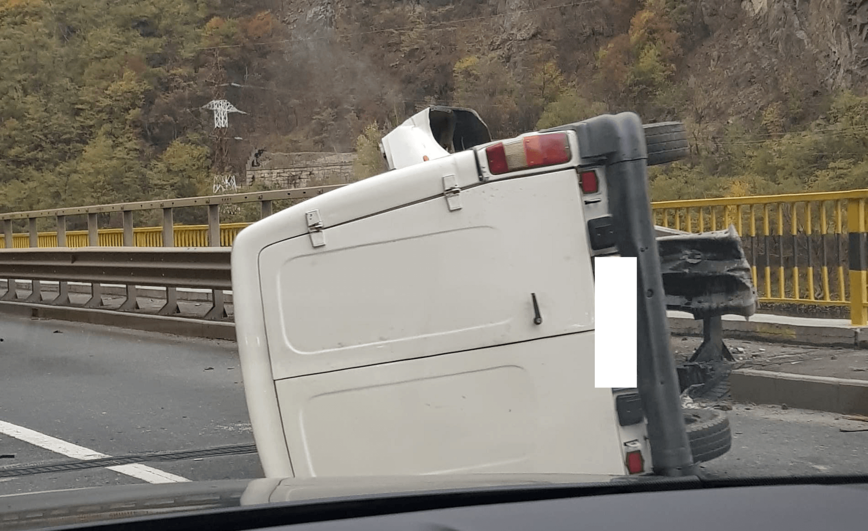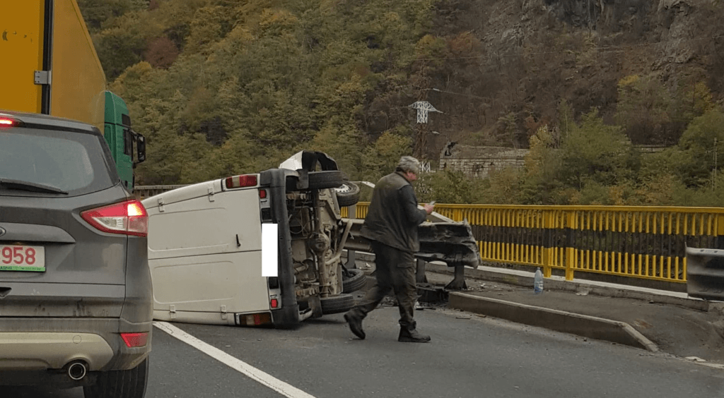 FOTO: O autoutilitară s-a răsturnat pe Valea Oltului