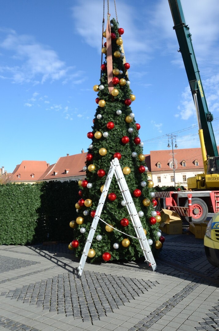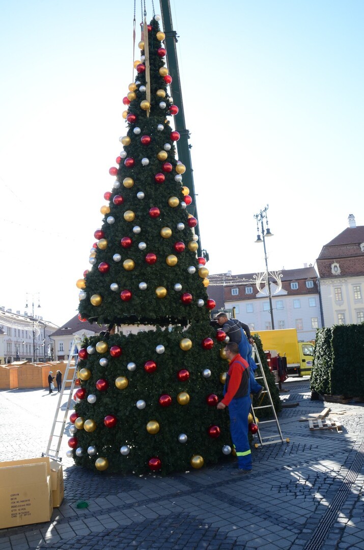 Peste 4000 de globuri și zeci de beculețe vor decora în acest an bradul mult așteptat de sibieni. Greutatea totală a construcție va fi de 11 tone iar înalțimea de 24 de metri.