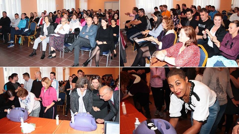 Evenimentul a fost susținut și găzduit de Casa Corpului Didactic din Sibiu. Instruirea cadrelor didactice este primul pas în acest proiect, urmând ca în săptămânile următoare să mergem în școlile din municipiul și județul Sibiu, la copiii din ciclul gimnazial, să le vorbim despre igiena mâinilor și a dinților. Partenerii noștri în acest proiect sunt: Inspectoratul Școlar Județean Sibiu, Asociația ProPediatria, Casa Corpului Didactic, Arhiepiscopia Sibiului și Clinica Dent Estet, alături de care ne-am propus să îi învățăm practic pe cei mici, câte ceva despre gesturile cheie de igienă, prin intermediul unor blackbox-uri cu ultraviolete și geluri speciale.