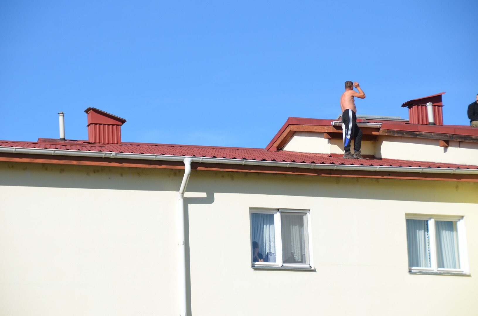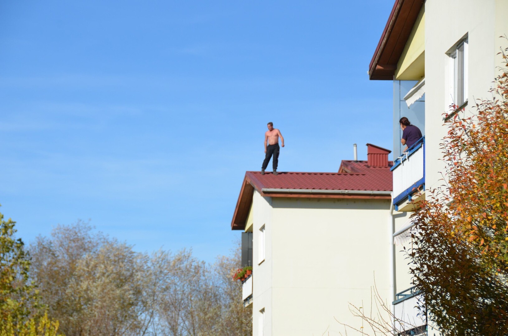 Acesta reclamă faptul că nu are unde să locuiască și mai bine moare. De mai multe ori, bărbatul s-a apropiat extrem de aproape de marginea clădirii, riscând să se dezechilibreze și să cadă.