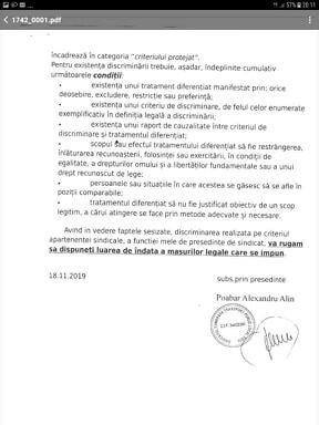 Consider că, prin afirmațiile sale, domnul Poabar își folosește poziția de lider de sindicat pentru a realiza denigrarea mea, că acesta mă calomniază prezentând fapte neadevărate privitoare la viața, comportamentul și activitatea mea profesională.