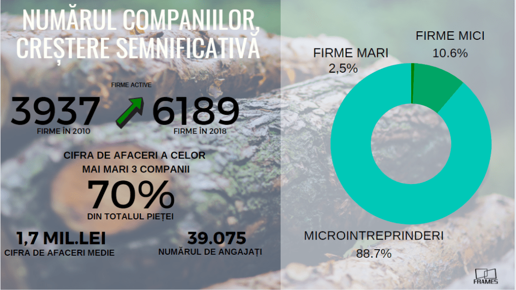 Așa s-a ajuns ca numărul firmelor active din domeniul exploatărilor forestiere și prelucrării lemnului să crească semnificativ din 2010 și până în prezent, de la 3937 la 6189 de firme în 2018 (cod CAEN 220 și 1610).