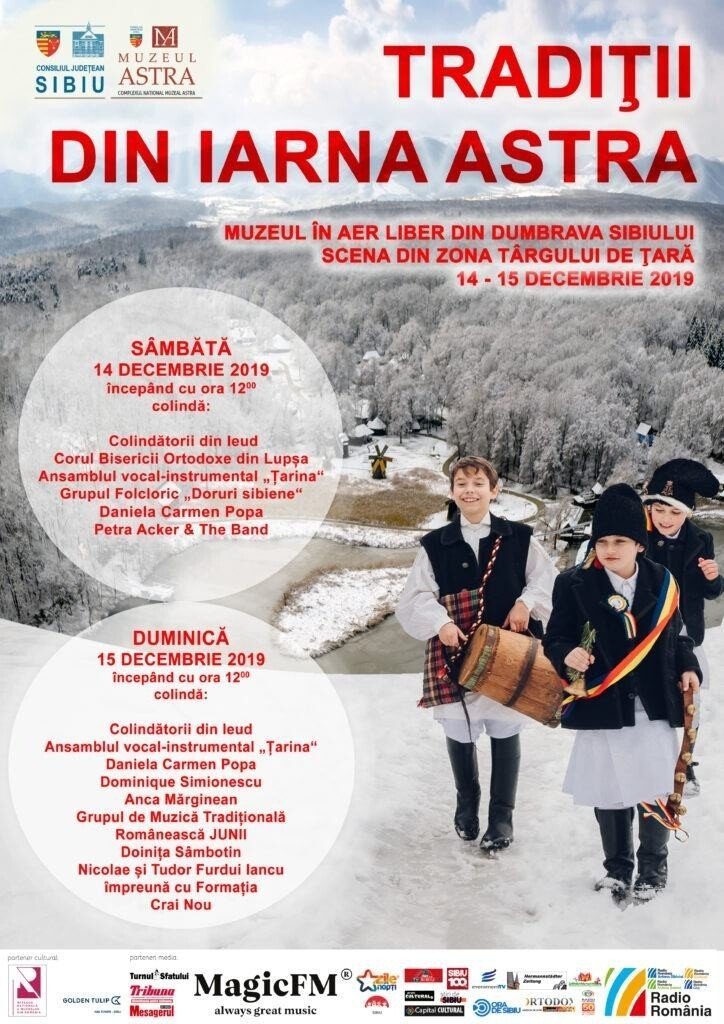 La Muzeul ASTRA vor veni în weekend artiști consacrați ca Nicolae Furdui Iancu și Tudor Furdui Iancu împreună cu Formația „Crai Nou”, Daniela Carmen Popa, Dominique Simionescu, Anca Mărginean, Doinița Sâmbotin, dar și peste 200 de colindători din cinci ansambluri, grupuri și formații.