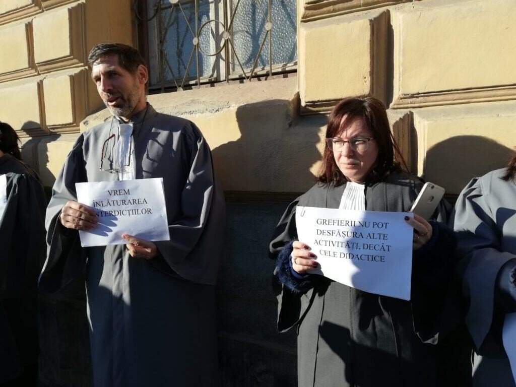 Grefierii s-au înțeles să protesteze azi, 18 decembrie, împotriva proiectului de anulare a pensiilor de serviciu supus astăzi votului deputaților.