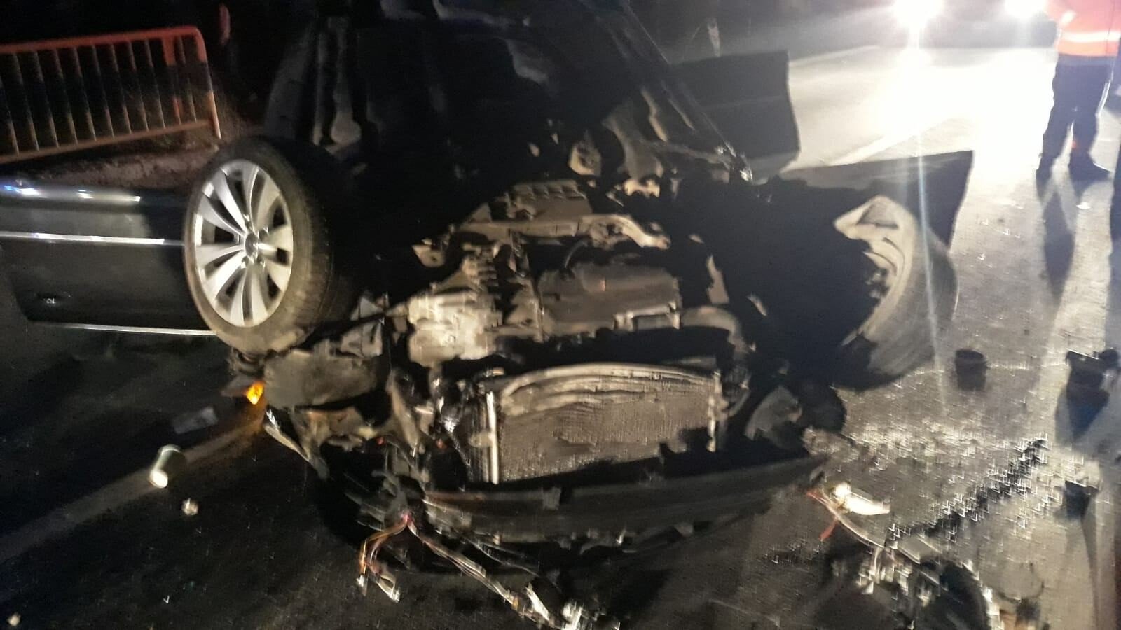 O mașină a lovit în această seară pe D.N.7 C.C, km 1+100m Călimănești, un cap de pod iar apoi s-a răsturnat.