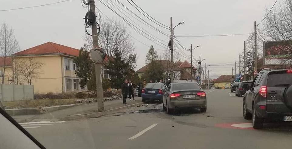 Copilaș rănit după ce două mașini s-au ciocnit pe strada Argeșului din Sibiu