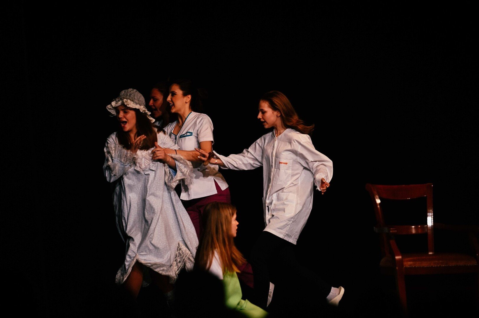 Sunt câteva dintre întrebările care se iscă în spectator făcându-l să tresară chiar din debutul spectacolului Personaje?! al Companiei de dezvoltare personală prin artă PSIHODRAMATIS coordonată de Ioana Blaga Frunzescu. E o zi de joi, 5 martie, când parcă toți ghioceii și lalelele de pe Pământ s-au adunat într-un buchet de primăvară și speranță. Pe măsură ce scena teatrului Gong din Sibiu se populează cu tot mai multe personaje cărora minunați elevi – actori din licee ale frumosului burg le dau viață, spectatorii râd cu poftă, aplaudă frenetic, chicotesc sau își ascund o lacrimă Asistăm la o fantezie transpusă scenic deopotrivă cu minuțiozitatea unei dantelării și cu forța unui torent. Momentele gingașe, de o duioșie cuceritoare … sunt urmate de unele interpretate romantic, altele – în forță, apoi de unele ironic usturătoare și altele chiar cutremurător de dramatice. Textele au la bază secvențe din marea literatură universală și românească, iar acordurile care se aud în răstimpuri sunt ale unei chitare lead mânuită cu frenezie de un adolescent cu plete castanii sau … transpuse vocal și înălțate deasupra capetelor noastre, în sala de spectacol, când de glasurile cristaline ale unui duet feminin bălai, cînd de trilurile ample ale Sopranei. Se perindă prin cabinetul fantezist al unei para-psiho-terapeute tot felul de Cațavenci, Mițe, Vete, Caliope, Cetățeni turmentați, Doici și Juliete, băieți furioși și Ioane zănatice, Spiridoni și Nine, dar și câte o Mari Popescu sau o Zoe, o Anca năpăstuită, un Nae, un Fănică, o nevastă a lui Pristanda, o femeie responsabilă cu curățenia, o Efimița în criză, o Farfurida- transpunere cinic feminină a tuturor Farfurizilor și Brînzoveneștilor din lume, un grup al ielelor și un altul al halatelor umblătoare… pentru ca totul să se încheie cu confetti și vorbele dulci amăgitoare ale unui Puck de o drăgălășenie cuceritoare. Text, subtext și pretext – toate sunt ansamblate într-un puzzle care nu se mai poate desface din sufletele spectatorilor, care privesc fascinați, cu răsuflarea tăiată, cum niște adolescenți minunați trăiesc cu fiecare fibră, la intensitate maximă, modelând fiecare piesă a marelui construct final – spectacolul Personaje?!Dacă nu mă credeți, mergeți să vedeți! În 28 aprilie, din nou la Teatrul Gong din Sibiu, de la ora 18.30. E o experiență artistică de dezvoltare personală prin artă – creată și dăruită publicului de toate vîrstele de un grup format din 26 de tineri frumoși, talentați și pasionați de ceea ce fac. E o experiență culturală care te face să exclami: Care va să zică, SE POATE!!!!!!!