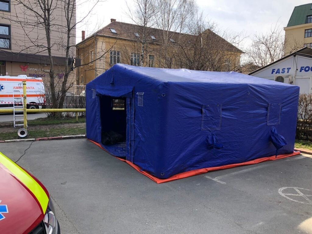 Având în vedere adoptarea măsurile suplimentare pentru prevenirea răspândirii Coronavirusului COVID-19, Inspectoratul pentru Situații de Urgență „Cpt. Dumitru Croitoru” al județului Sibiu a amenajat, astăzi 15 martie, în curtea interioară a Spitalului Clinic Județean Sibiu un cort destinat trierii pacienților.
