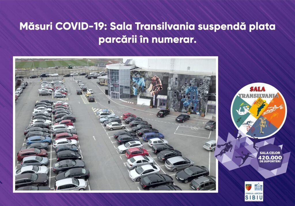 Astfel, cei care își vor lăsa mașinile în parcarea de la Sala Transilvania, situată în Sibiu, Str. O. Goga, nr. 1, nu mai pot achita contravaloarea tichetului de parcare numerar, aceștia fiind rugați să urmeze informațiile de plată alternative afișate pe panourile din incinta parcării: prin intermediul aplicației Mobilpay Wallet, prin intermediul cardului bancar sau prin SMS.