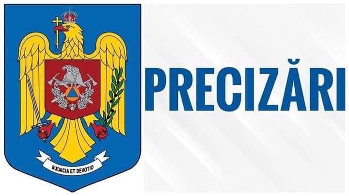 Inspectoratul pentru Situații de Urgență „Cpt. Dumitru Croitoru” al județului Sibiu face următoarele precizări: