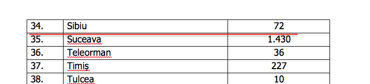 Numărul de cazuri confirmate, pe județe, potrivit raportării Institutului Național de Sănătate Publică: