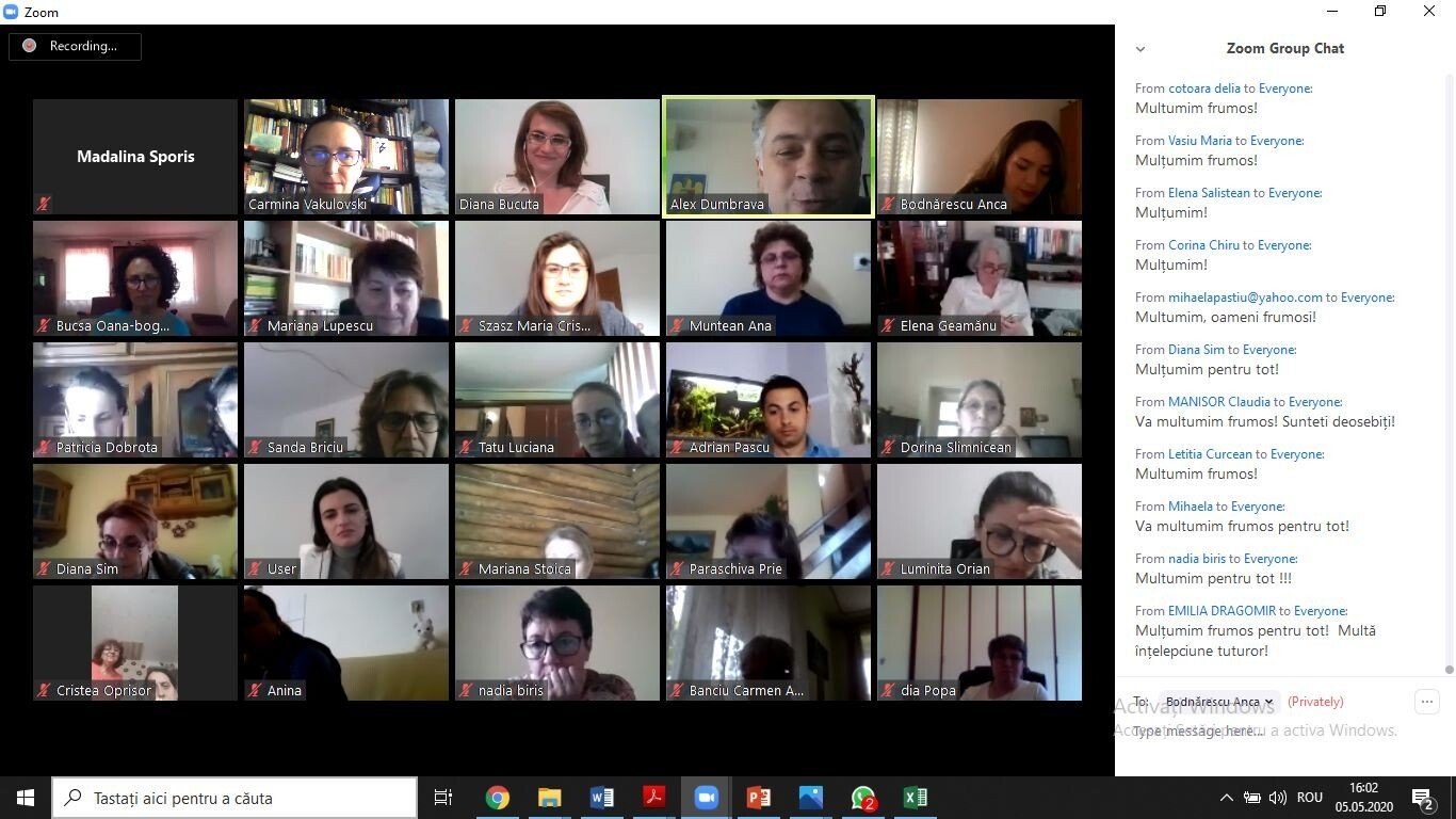 În cele aproape 3 ore de webinar au fost prezentate şi şase exemple de bune practici ale unor colegi din învăţământ: Viora Rozorea, Mădălina Sporis, Corina Mohanu, Anca Bodnărescu, Iuliana Turi, Tudorel Drăgoi.