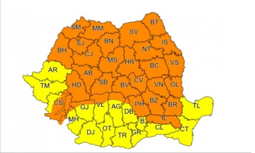 Administraţia Naţională de Meteorologie, Centrul Meteorologic Regional Transilvania Sud anunță COD PORTOCALIU de vreme instabilă.