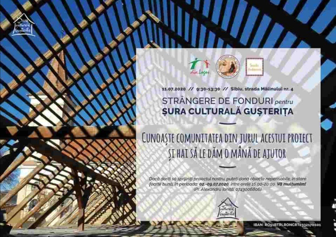 Sâmbătă, 11 iulie, cele două parohii arondate Bisericii „Buna Vestire” din Sibiu-Gușterița organizează un bazar pentru strângere de fonduri în vederea finalizării unui proiect inedit, numit „Șura Culturală Gușterița”, care presupune transformarea unei vechi șuri a bisericii într-un centru educațional pentru copiii defavorizați din comunitate și nu numai. Participanții vor avea posibilitatea să vadă stadiul proiectului și planurile de viitor, în cadrul unui eveniment cultural și educational, organizat cu scopul de a strânge sumele necesare pentru continuarea lucrărilor de amenajare a spațiului, potrivit Mitropolia-Ardealului.ro