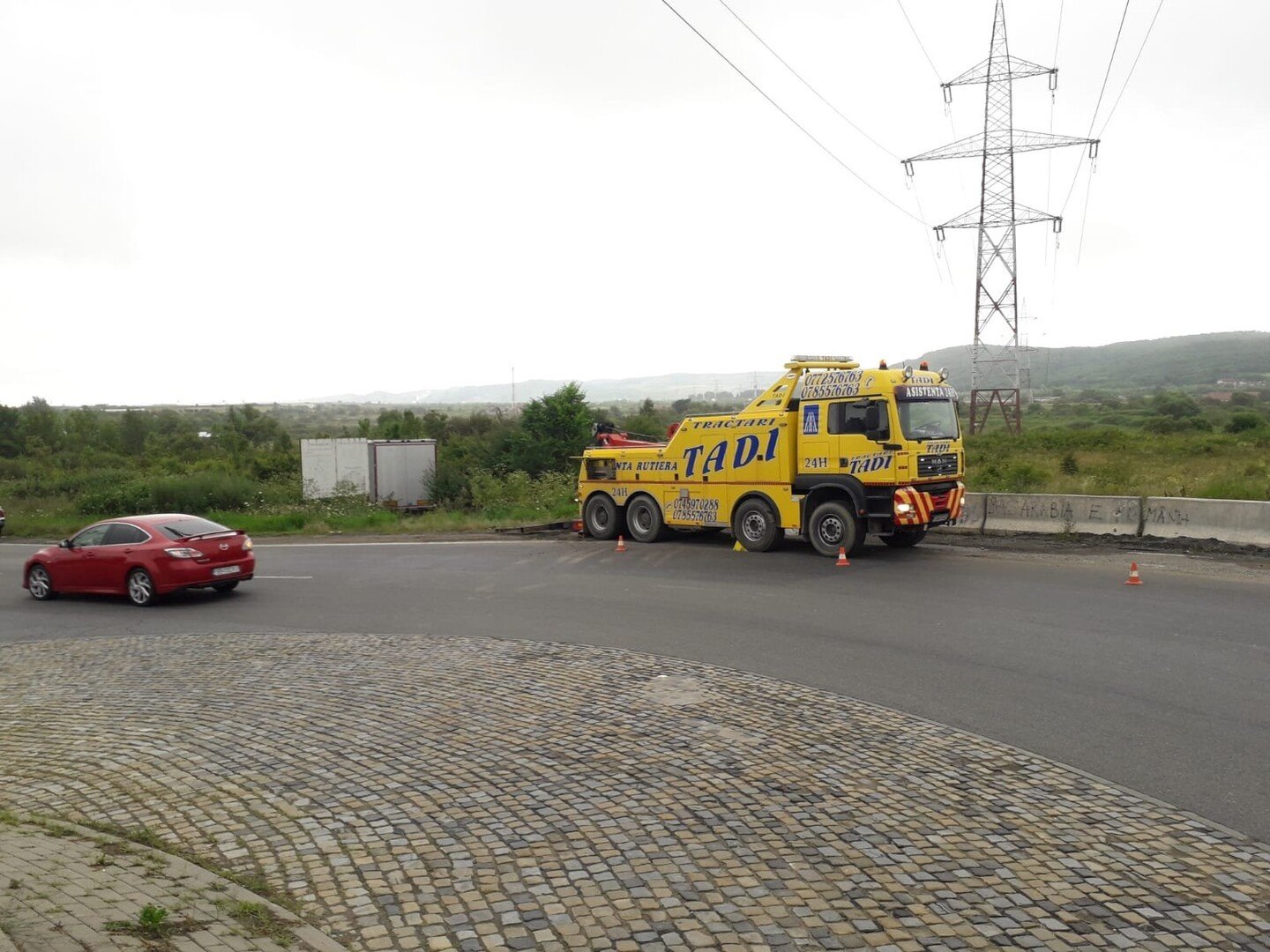 Din fericire, autocamionul nu a intrat pe contrasens, evitându-se astfel un accident rutier.