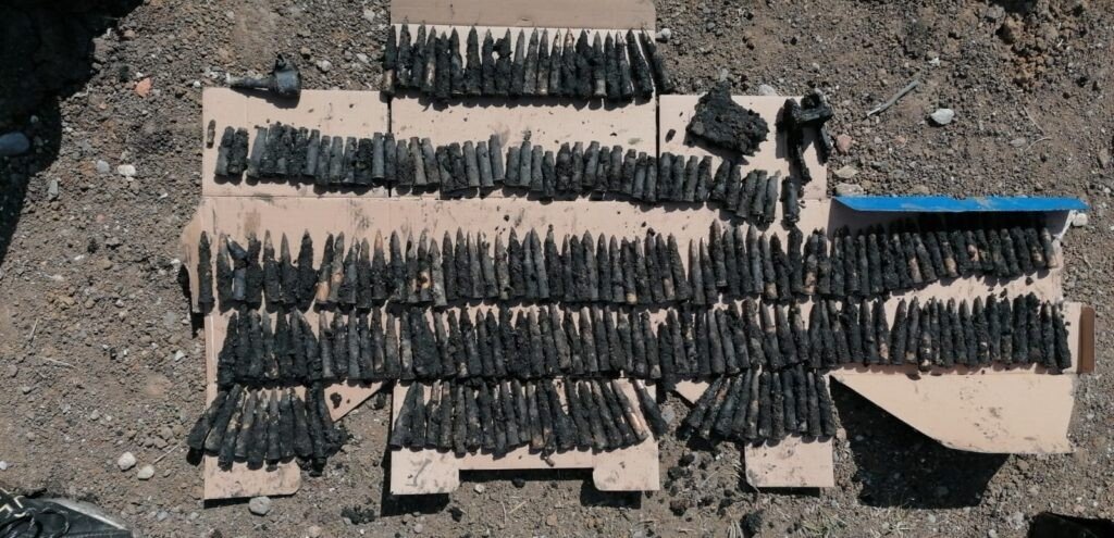 Au fost ridicate aproximativ 200 de cartușe de infanterie calibru 7,65 mm, aproximativ 50 de tuburi goale de cartușe și o bucată dintr-o grenadă.