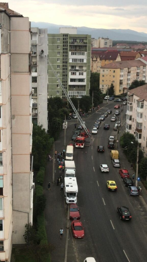 „Urmare a unui apel venit pe numărul unic de urgență 112, prin care a fost solicitată deblocarea unui apartament, în care se afla un bărbat care nu răspundea la ușă, ISU Sibiu a intervenit cu o autospecială de salvare de la înălțime și una de descarcerare, în municipiul Sibiu, pe strada Rahovei.