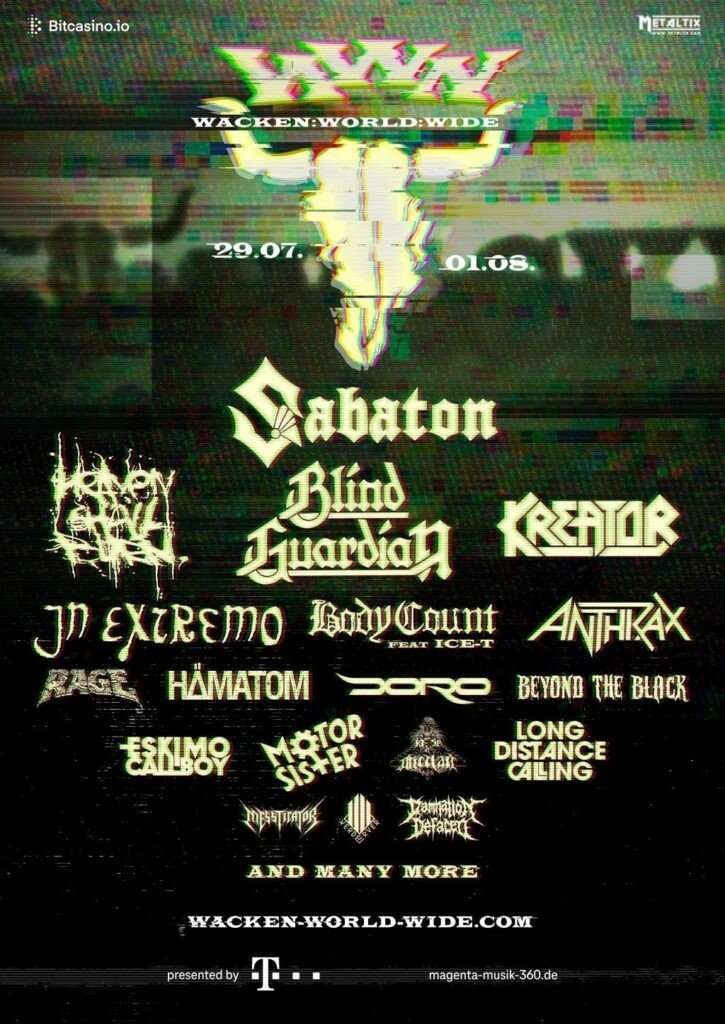 Cel mai mare festival de metal online din lume debutează miercuri, 29 iulie 2020 și se va încheia în 1 august, exact perioada în care trebuia să aibă loc tradiționalul festival din nordul Germaniei. Ediția online din acest an promite o experiență complet nouă, o abordare digitală completă creată din spectacole concepute exclusiv pentru această manifestare. Prin designul inovativ și implementarea tehnică, aceasta va fi o premieră mondială în domeniul muzicii live! Acest eveniment va fi disponibil gratuit online pe wacken-world-wide.com, MagentaMusik360.de și Magenta TV, precum și pe canalul #DABEI!