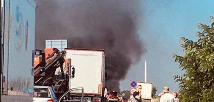 FOTO: Trafic blocat la intrare în Cristian după ce o mașină a luat foc