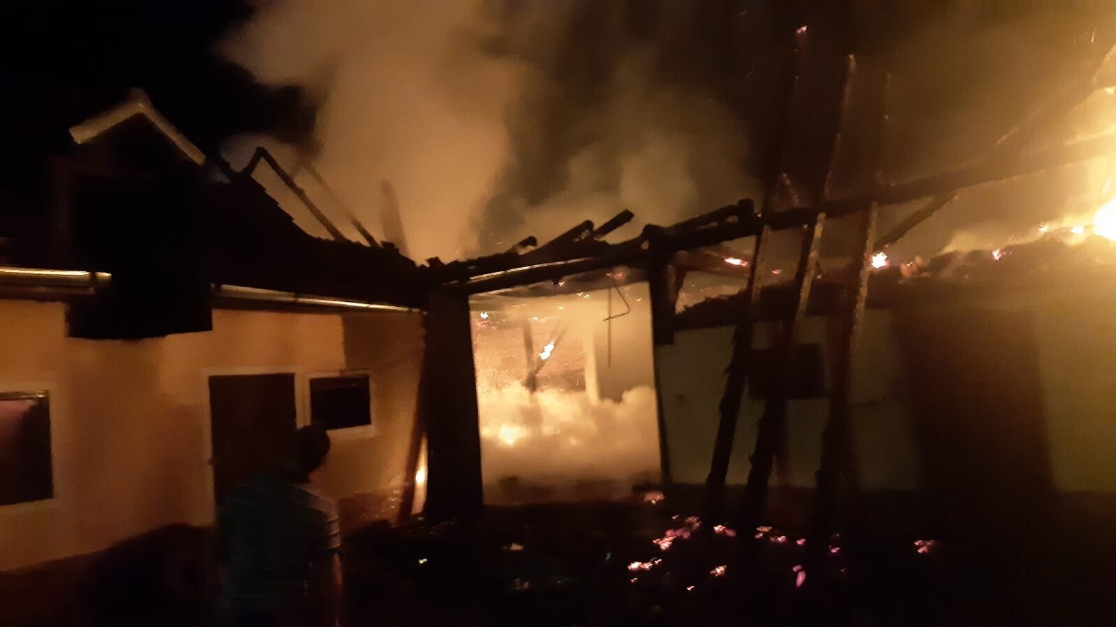 A ars acoperișul pe o suprafață de aproximativ 300 mp a următoarelor anexe : o șură, două garaje și a unei magazii de lemne. Au ars de asemenea aproximativ 200 baloți de fân și cca 5 mc de lemn de depozitat.