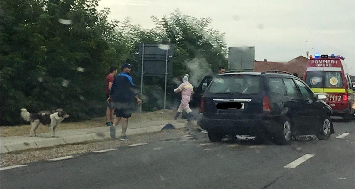 Au fost solicitați și pompierii militari deoarece de la motorul uneia dintre mașini ieșea fum.