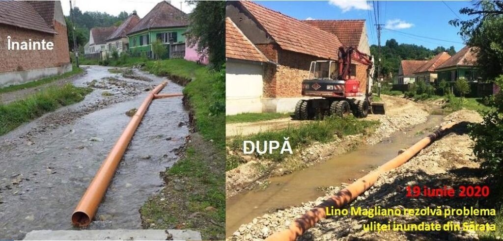 4. 19 iunie 2020 – o uliță inundată timp de 4 zile, din Sărata, este ”rezolvată” rapid de Lino Magliano: cu propriul excavator desfundă șanțul care nu permitea scurgerea apei. Asta după mai multe plângeri ale locuitorilor din zonă către primărie, care pur și simplu i-a ignorat.