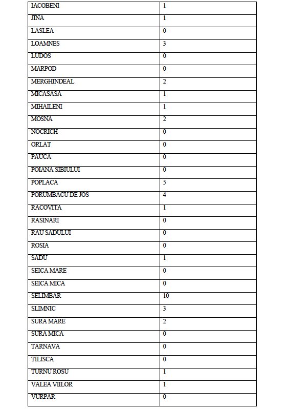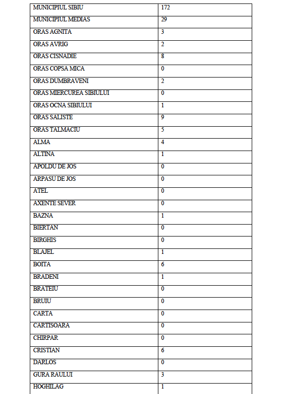 Ziarul Sibiu Independent continuă publicarea listelor cu situația COVID din Unitățile Administrativ Teritoriale ale județului Sibiu.