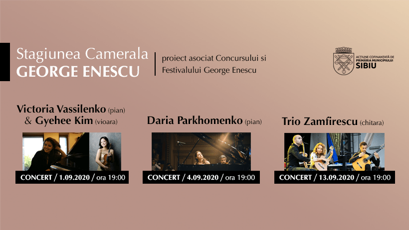 Începând de marți, 1 septembrie, în cadrul Stagiunii Camerale George Enescu, vor avea loc o serie de concerte excepționale susținute de câștigători și protagoniști ai Festivalului și Concursului George Enescu: Victoria Vassilenko, Gyehee Kim, Daria Parkhomenko, alături de cei trei frați Zamfirescu, virtuoși ai chitarei clasice.