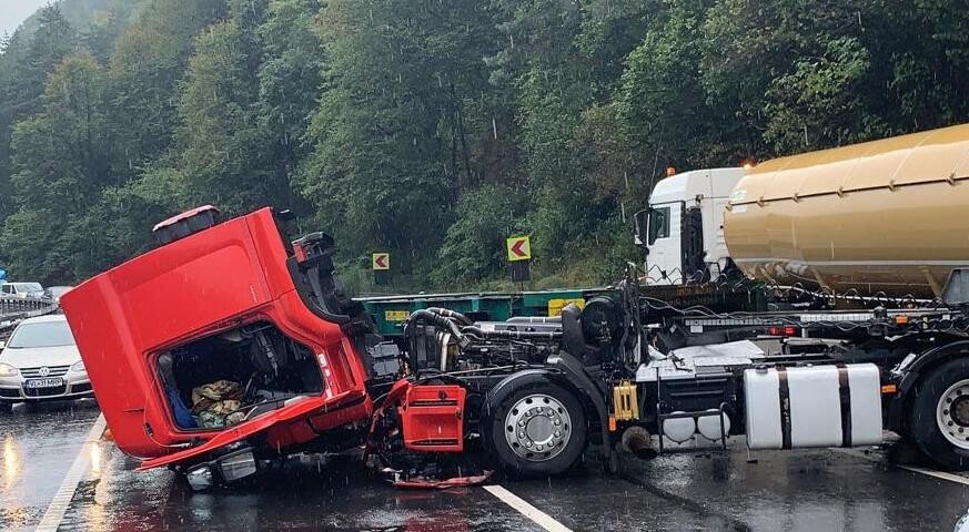 Din primele informații șoferul autocamionului nu a fost rănit iar la fața locului se află mai multe echipaje de poliție care efectuează măsurători și dirijează circulația.