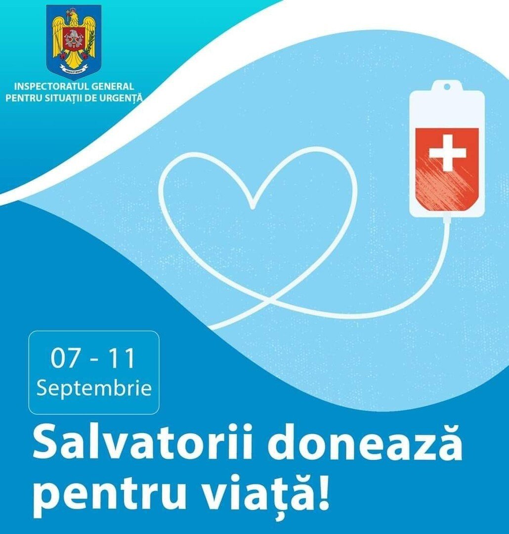 Vrei să ajuți? Arată că-ți pasă! Mergi și donează! Fiecare dintre noi poate fi în locul celor care așteaptă picătura de sânge! ” transmite Inspectoratul General pentru Situaţii de Urgenţă