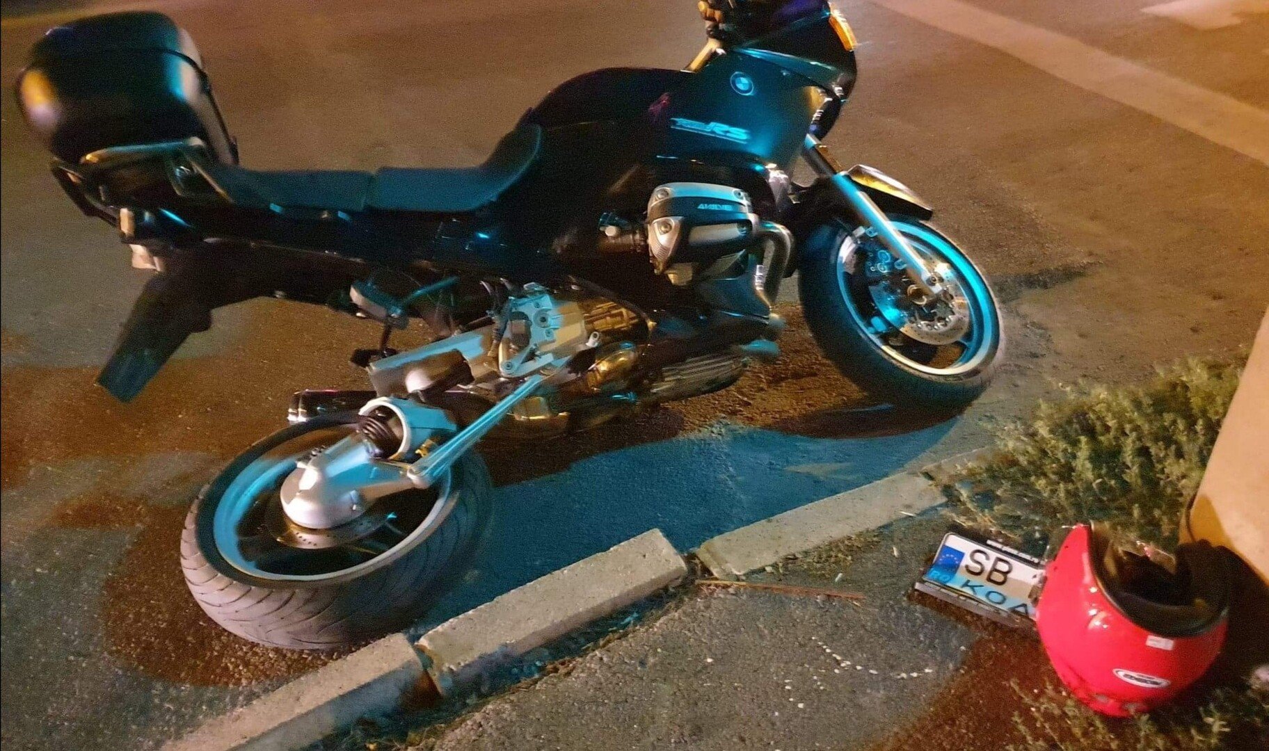 Motociclistul în vârstă de 49 de ani a suferit o fractură de gleznă și a fost transportat la spital, fiind conștient. Conducătorul auto are 20 de ani, ambii fiind din Sibiu.