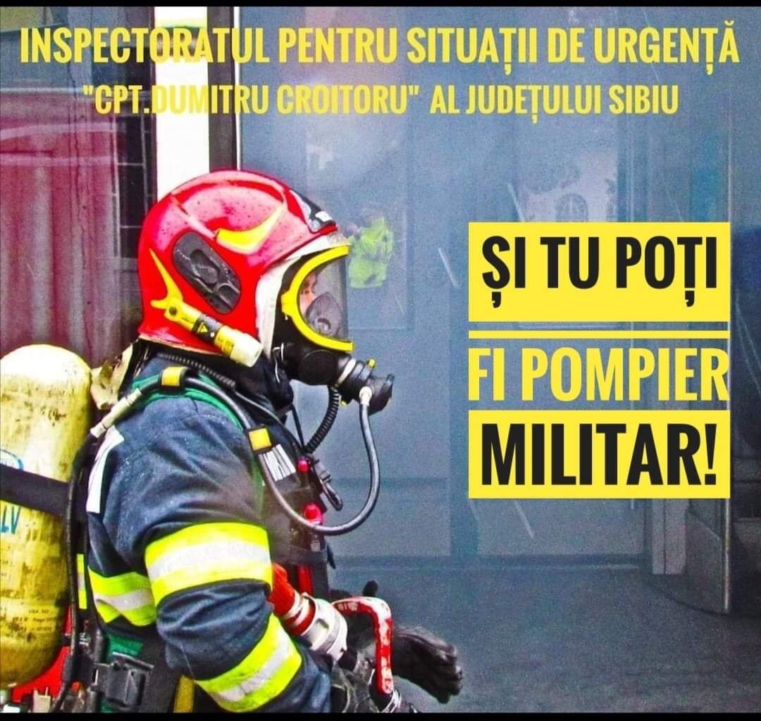Inspectoratul pentru Situații de Urgență „Cpt Dumitru Croitoru” al județului Sibiu a demarat procedura de încadrare temporară, fără concurs, pe durata instituirii stării de risc epidemiologic și biologic, a 10 posturi de conducător auto (autospeciale) și 7 posturi de subofițer operativ principal.