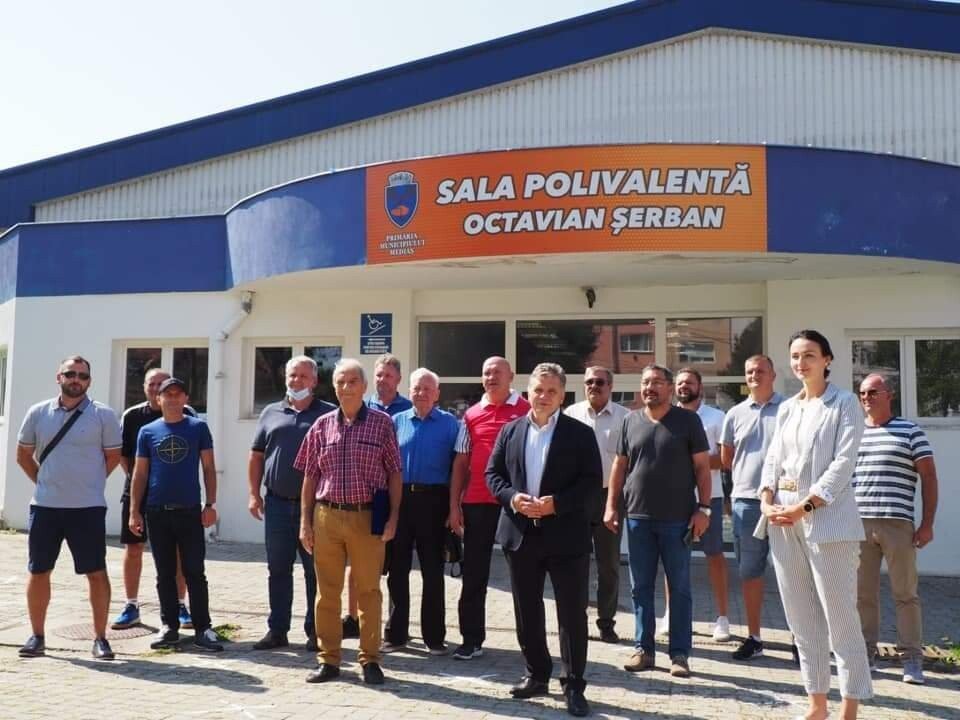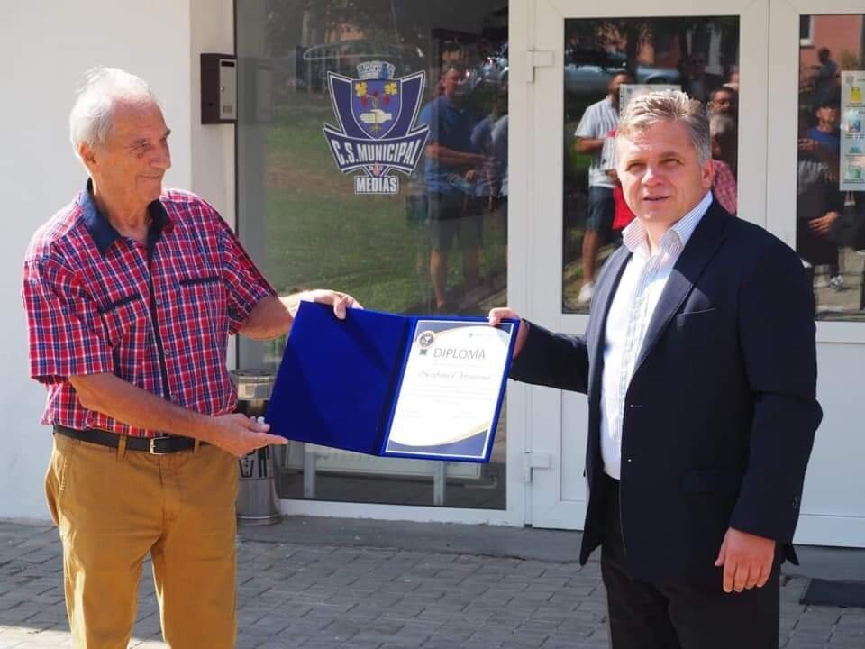 Începând de ieri, 11 septembrie, Sala Sporturilor din cartierul Vitrometan din Mediaș, poartă OFICIAL numele antrenorului emerit Octavian Șerban. Pe lângă reprezentanții conducerii administrației locale publice, sportivi și foști colegi ai antrenorului, la ceremonie a fost prezent și primarul Municipiului Mediaș, Gheorghe Roman, care i-a înmânat diploma profesorului – antrenor Octavian Șerban.