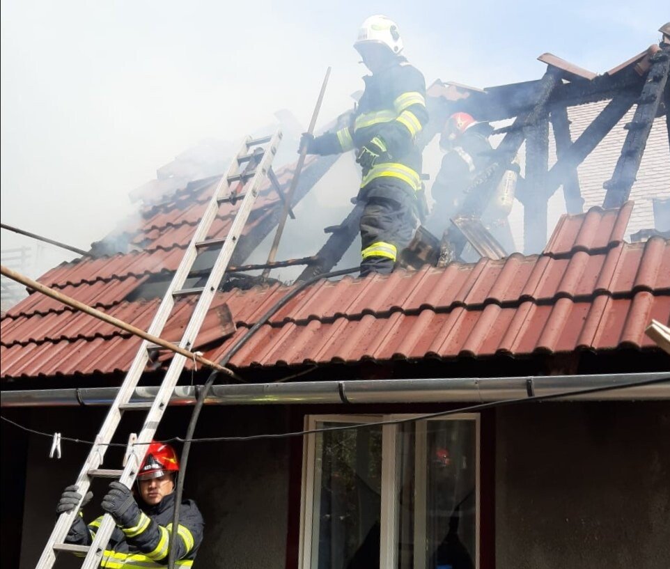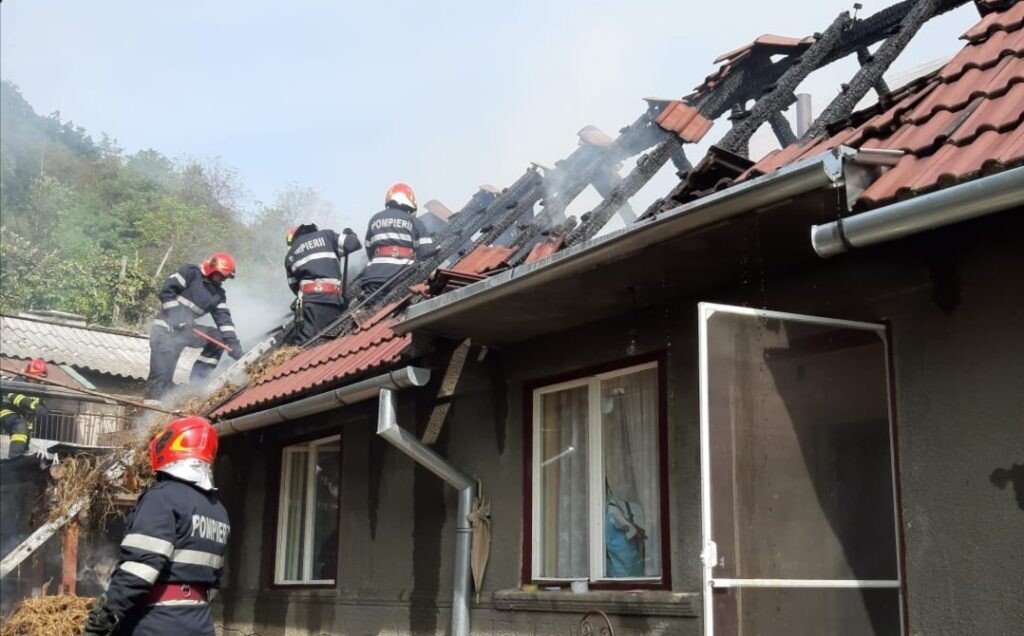 A ars acoperișul pe o suprafață de aproximativ 80 mp iar incendiul a deteriorat aproximativ 2 tone de fân depozitat în podul casei.