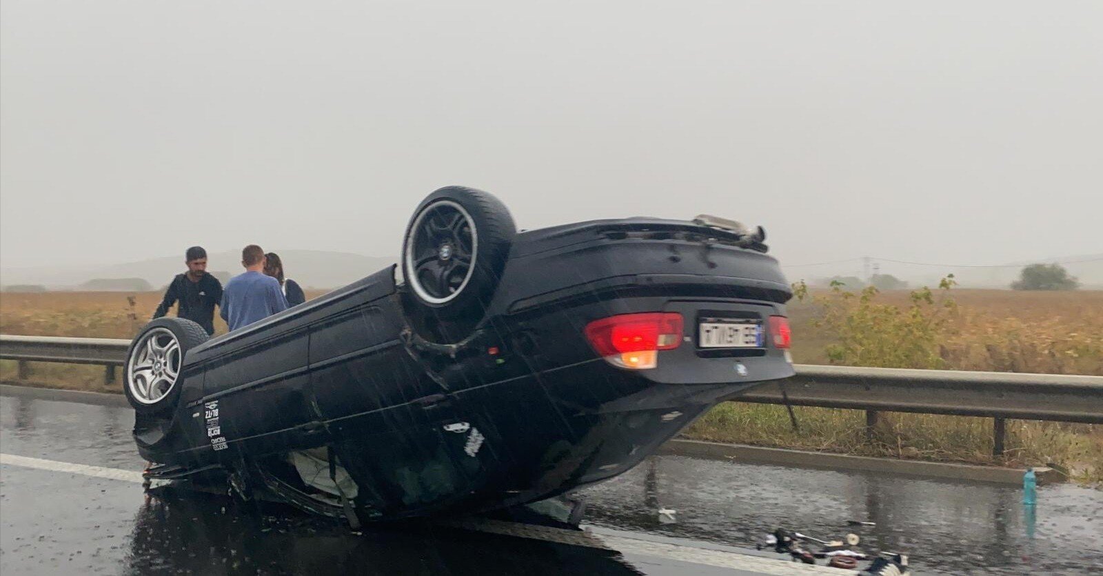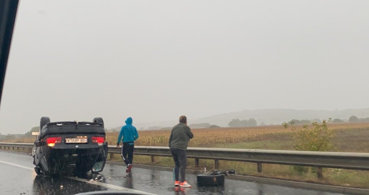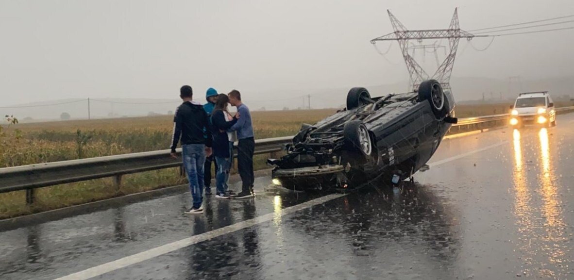 Din primele informații se pare că un șofer nu a adaptat viteza la condițiile de drum și a lovit parapetul median iar apoi s-a răsturnat.