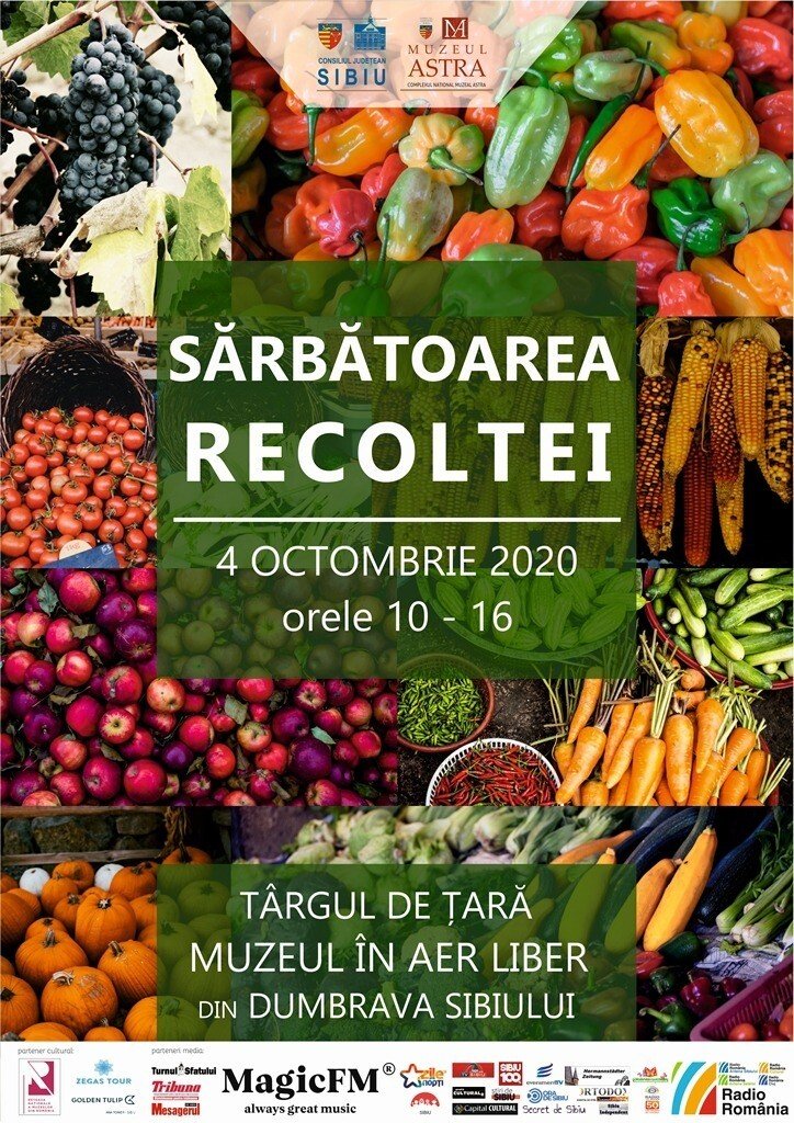Muzeul ASTRA, instituție ale cărei acțiuni sunt posibile prin finanțarea Consiliului Județean Sibiu, organizează duminică, 4 octombrie 2020, evenimentul Ziua Recoltei. Acesta va avea loc la Târgul de țară din Muzeul în aer liber din Dumbrava Sibiului, între orele 10 și 16. Locația se va transofrma într-un atelier gastronomic de toamnă, unde se va prepara zacuscă și dulceață de prune plus ciorbă de varză cu carne de noatin și ghiveci de legume. Vizitatorii vor putea degusta din toate preparatele făcute la Sărbătoarea Recoltei.