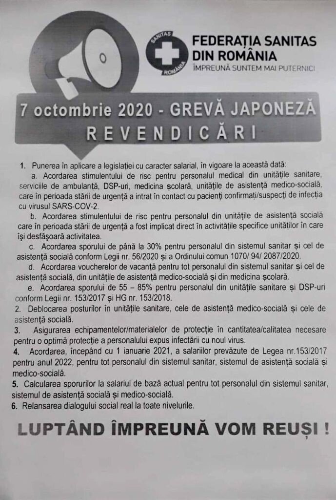 Federația SANITAS a anunțat recent faptul că dacă Guvernul nu vine cu soluții concrete cu privire la situația mediciilor din România, aflați de luni bune în lupta cu coronavirusul, ar putea declara “greva japoneză” la nivel național, începând cu data de 7 septembrie.