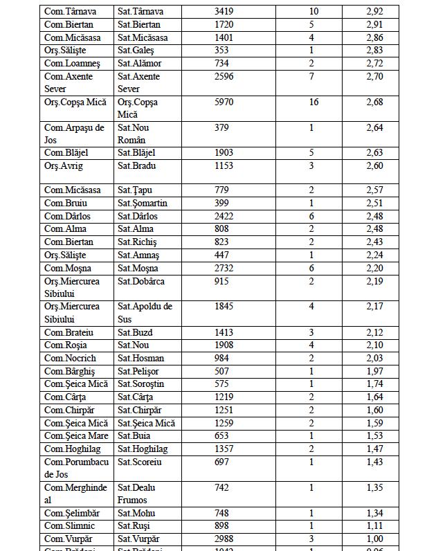 4. Comuna Șelimbăr – 172 cazuri / rata de incidență 14,45