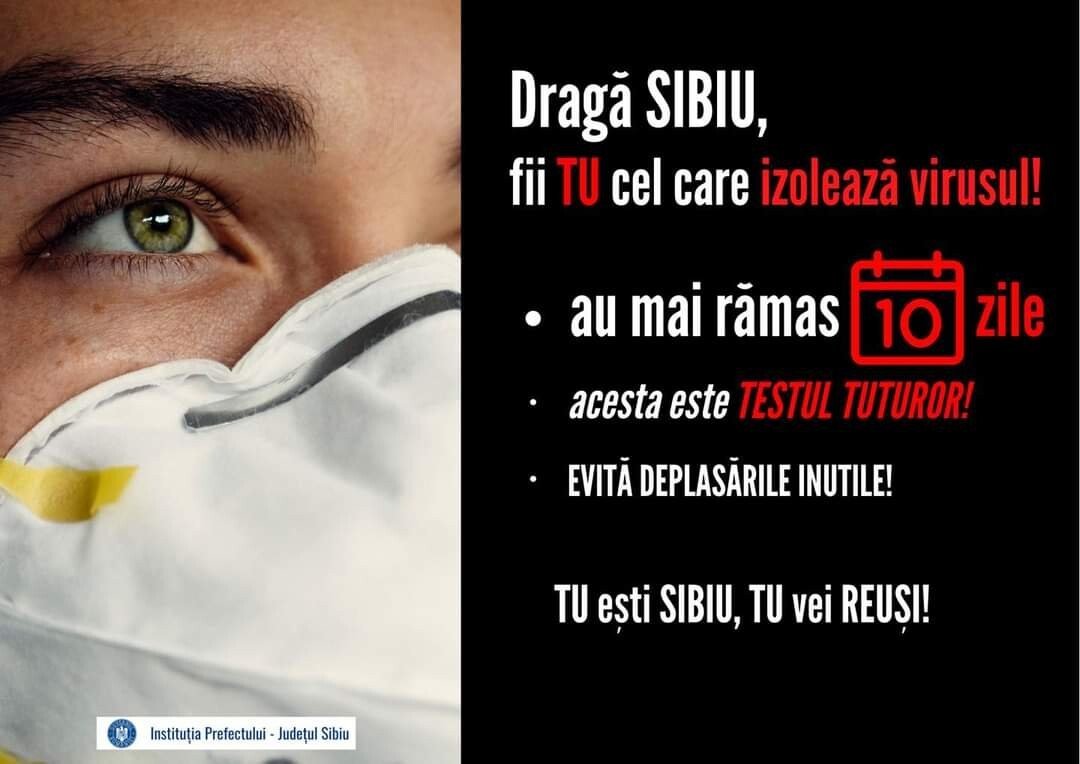 Pe pagina de Facebook a Prefecturii județului Sibiu a apărut o postare prin care sibienii sunt informați de faptul că au mai rămas doar 10 zile de carantină,