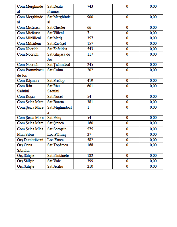6. Oraș Tălmaciu – 67 cazuri / rata de incidență 9,75