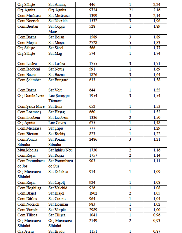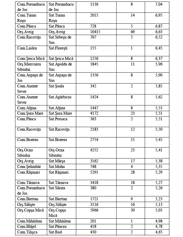 10. Comuna Șura Mică – 24 cazuri / rata de incidență 9,02