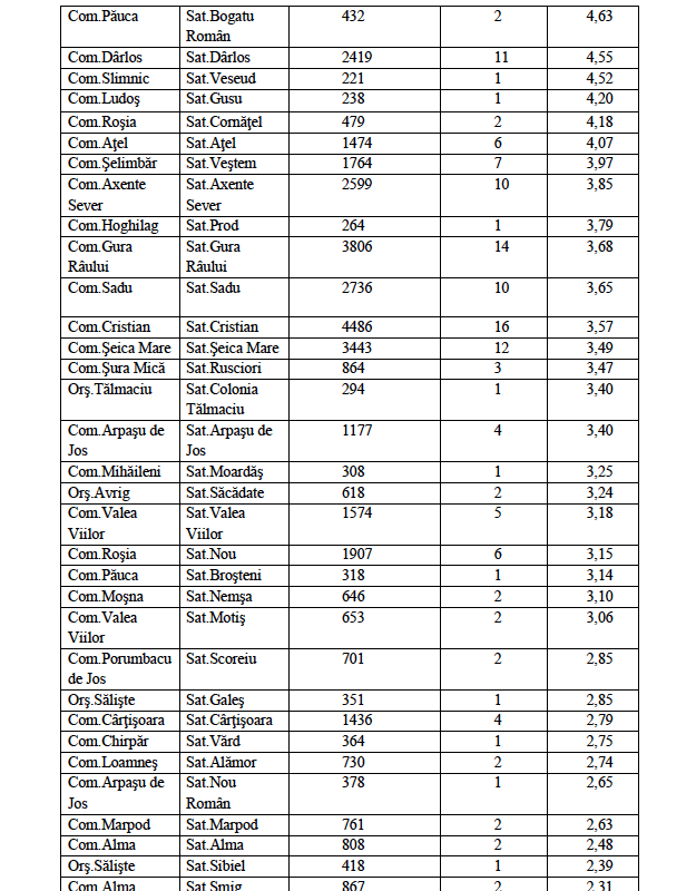 4. Comuna Șelimbăr – 127 cazuri / rata de incidență 10,65