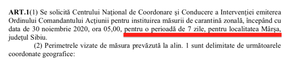 Însă, în această seară, autoritățile sibiene au aprobat HOTĂRÂREA nr. 103/29.11.2020, care prevede o perioadă de carantină de 14 zile.