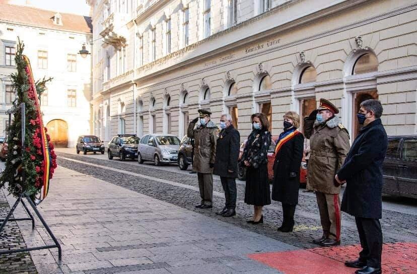 Primarul Astrid Fodor a participat astăzi, de Ziua Națională a României, la ceremonia de depunere de coroane organizată de Comenduirea Garnizoanei Sibiu pentru a comemora eroii români. La ceremonie au participat Daniela Cîmpean, președinta Consiliului Județean Sibiu și Mircea Crețu, prefectul județului Sibiu.