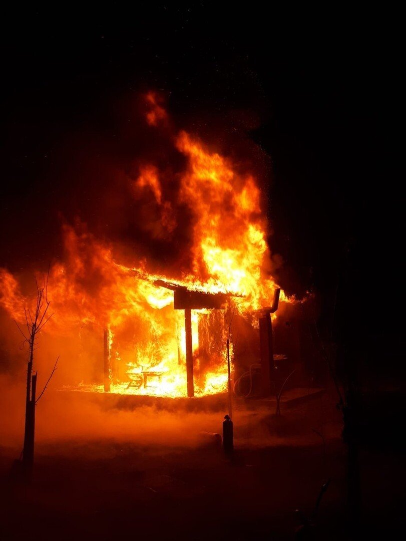 A ars 90% din cabana de lemn de cca 45 mp precum și electrocasnice și mobilier din aceasta.