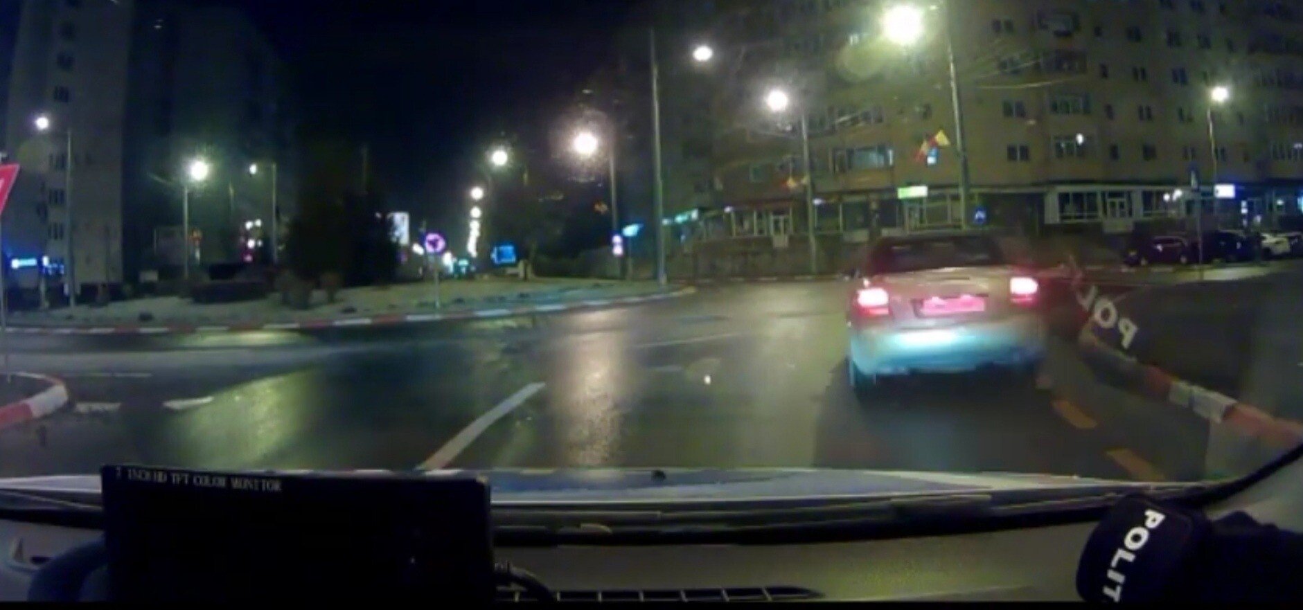 Astfel, echipajul de poliție a urmărit în trafic mașina în cauză, iar după câteva sute de metri, într-o parcare din zona străzii Nicolae Iorga, cel aflat la volan a acroșat ușor un stâlp din beton, a lovit apoi un stâlp metalic, după care a ieșit din vehicul și a încercat să fugă, fiind reținut de către agenții de poliție. Din fericire, în urma acestui eveniment au rezultat doar pagube materiale.